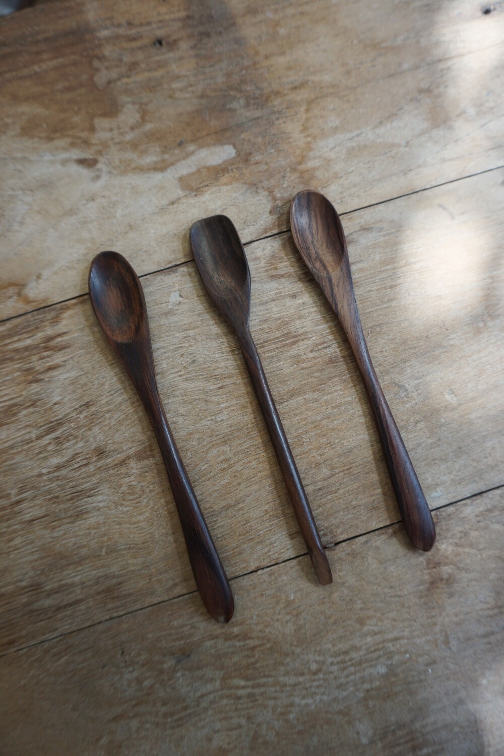 장미나무로 만들어지는 우드 스푼입니다. 잼과 버터를 바르거나 음료를 저어 마시는 머들러로 사용할 수 있습니다.