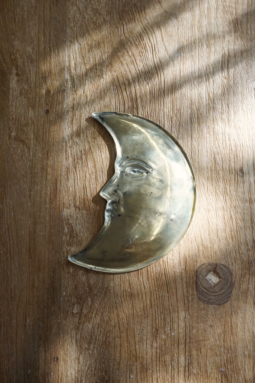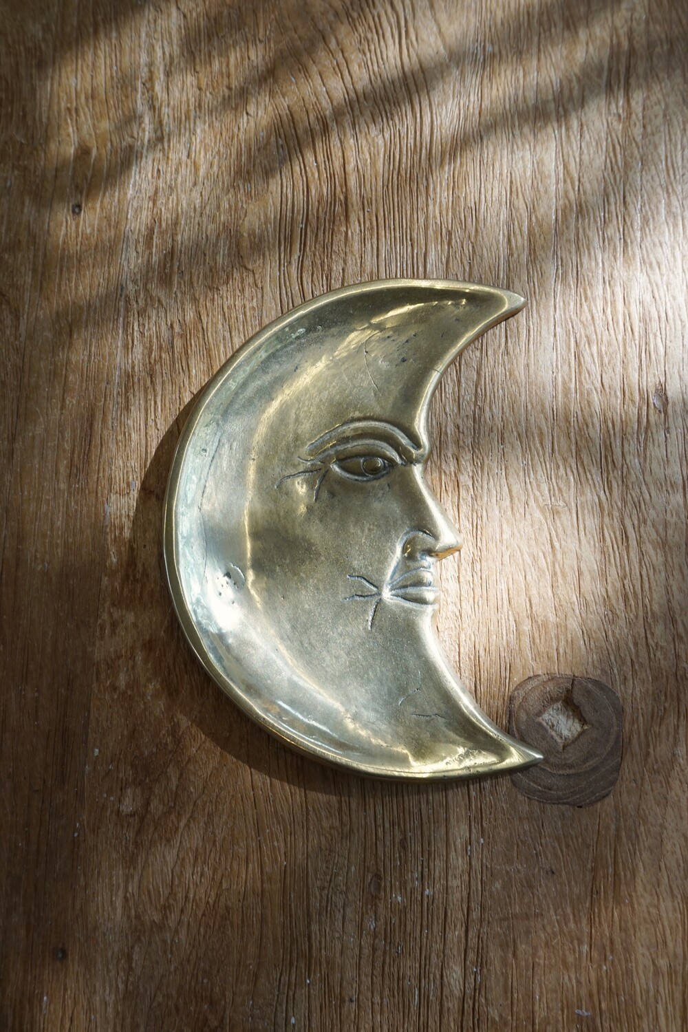 황동으로 제작된 달 모양 트레이입니다. 악세사리를 올리거나 캔들 홀더, 인센스 홀더 등으로 사용할 수 있으며 모든 제품이 빈티지 워싱으로 마감해 곳곳에 기스, 까짐으로 보이는 부분들이 존재합니다. 이는 불량 사유가 되지 않습니다.