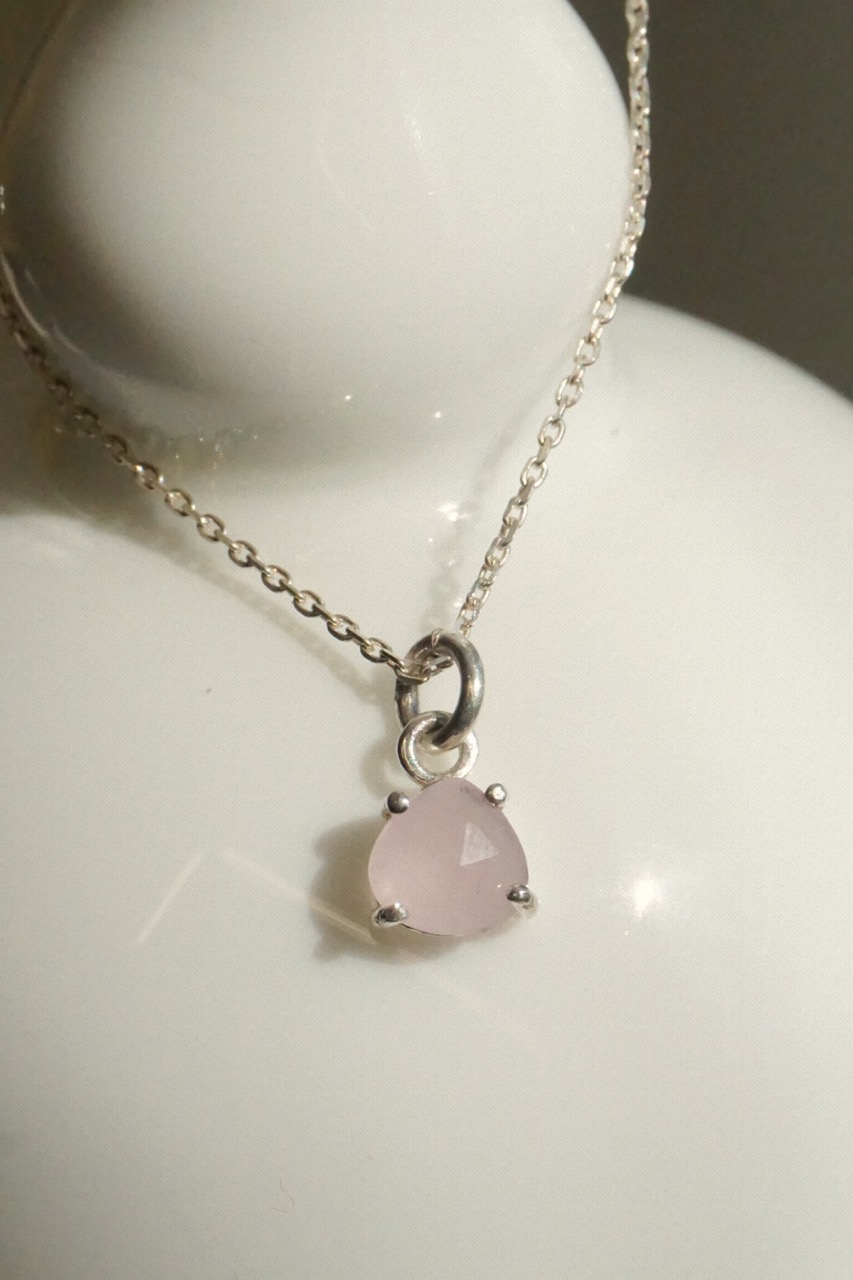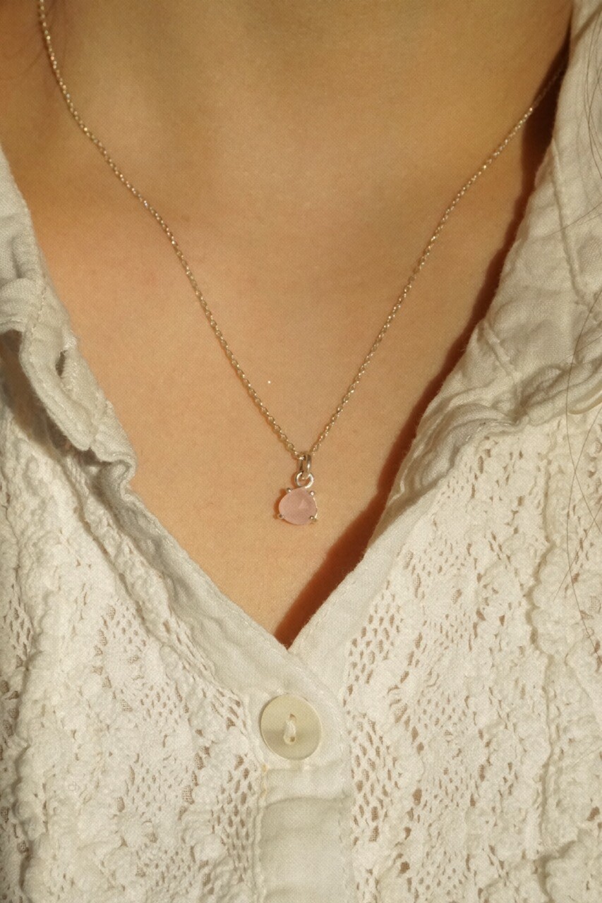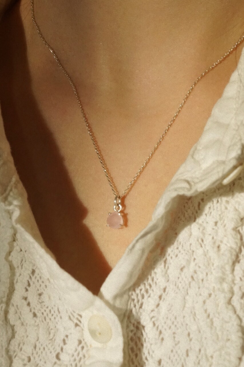은은한 분홍 빛을 담고 있는 핑크 칼세도니는 맑고 여성스러운 스타일의 목걸이 입니다. 블라우스나 원피스와 함께 착용하시면 좋을 것 같아요!