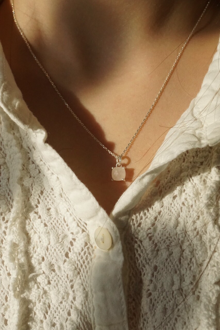 무드의 홍수정은 흰색에 가깝게 맑은 분홍빛을 띄어 사랑스럽고 깨끗한 목걸이 입니다.