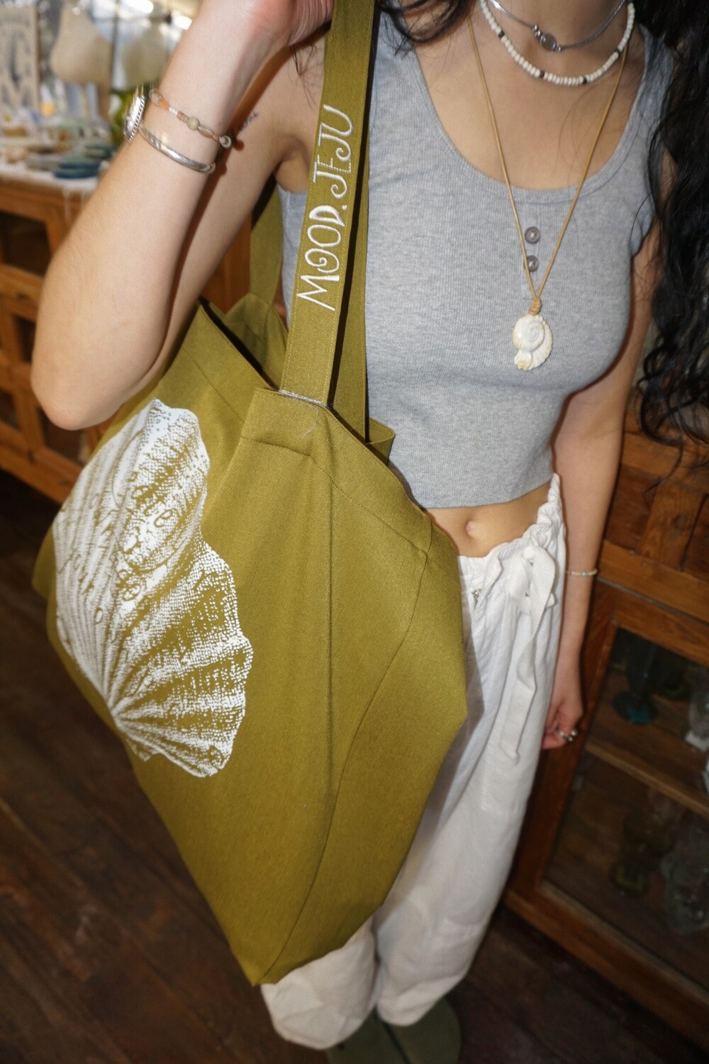 무드만의 조개 그래픽과 무드만의 정체성을 담은 “Create your own Mood” 가 새겨진 26 S/S 에코백입니다.