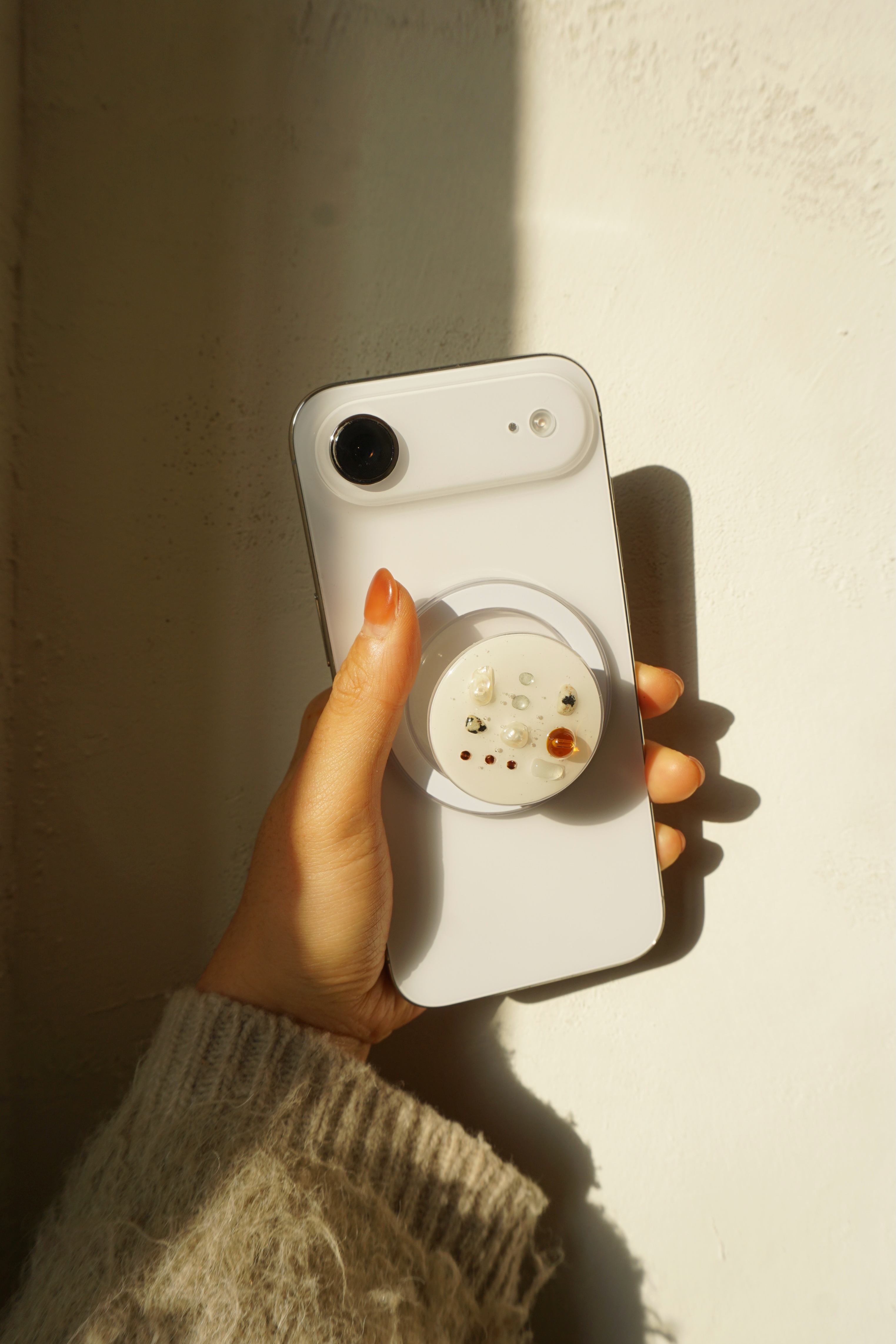 아이폰 17 에어로 촬영하였습니다. 노을 빛이 드는 시간에 촬영해 아이폰과 그립톡의 색감이 노랗게 잡혀있습니다. 실제 제품 색상은 화이트 컬러로 참고해주시길 바랍니다.
