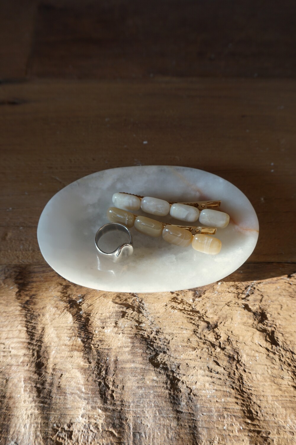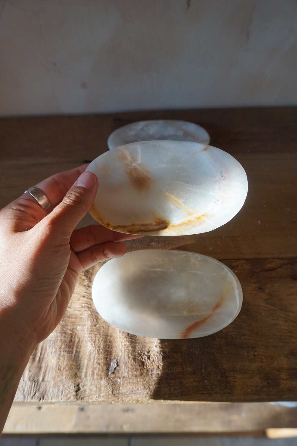 인도에서 가장 높은 퀄리티의 백옥을 깍아 핸드메이드로 제작된 타원형 트레이입니다. 사진처럼 모든 제품의 무늬와 컬러가 다른 제품으로 랜덤 배송 되며 예민하신 분들은 주문 전 카카오톡 채널 문의 혹은, 오프라인 스토어 방문을 권장드립니다.