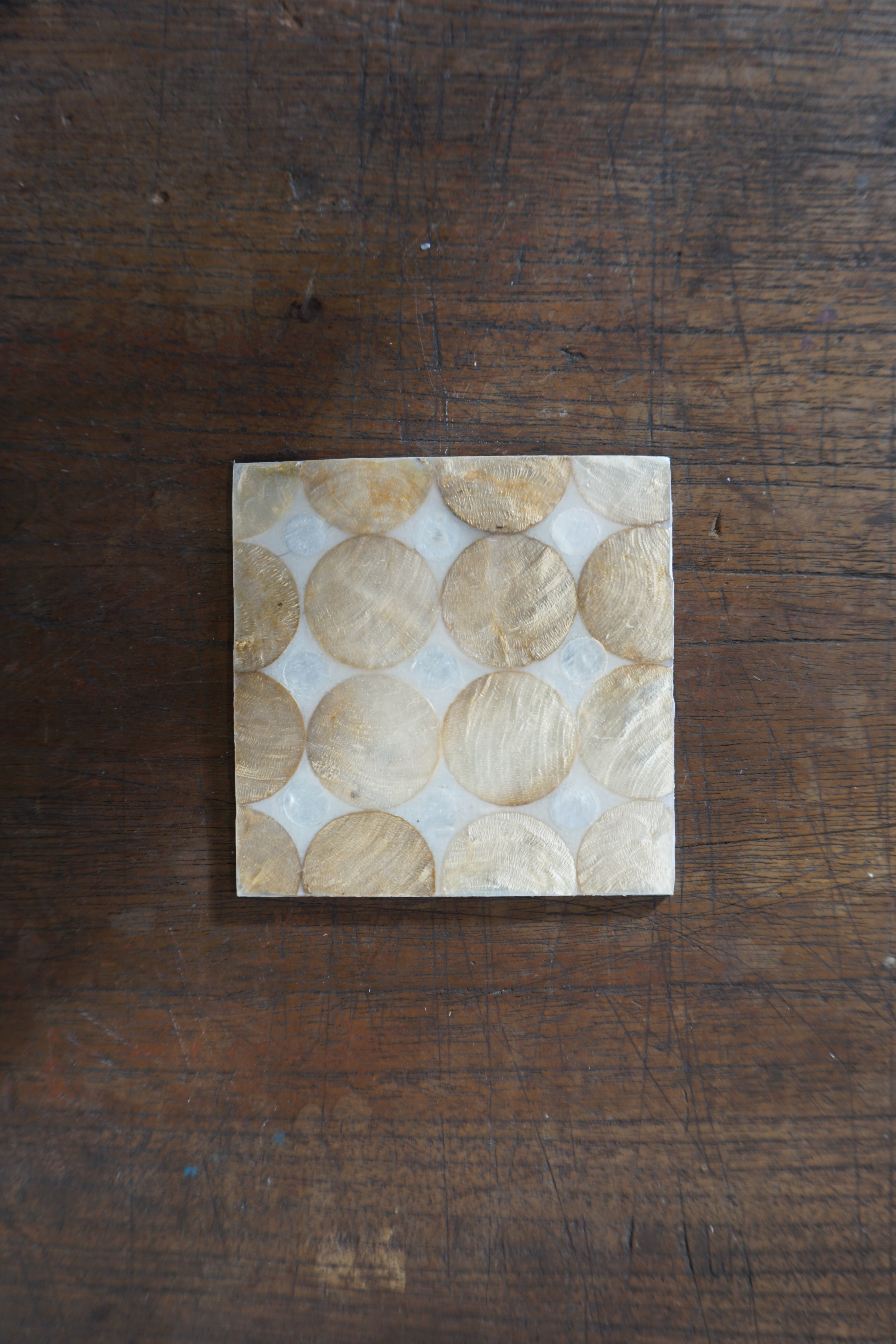 실제 조개 껍데기를 이용해 만들어진 코스터 겸 캔들 홀더입니다. 일부 제품은 아래 검정색 패드가 있어 미끄럼을 방지해줍니다.