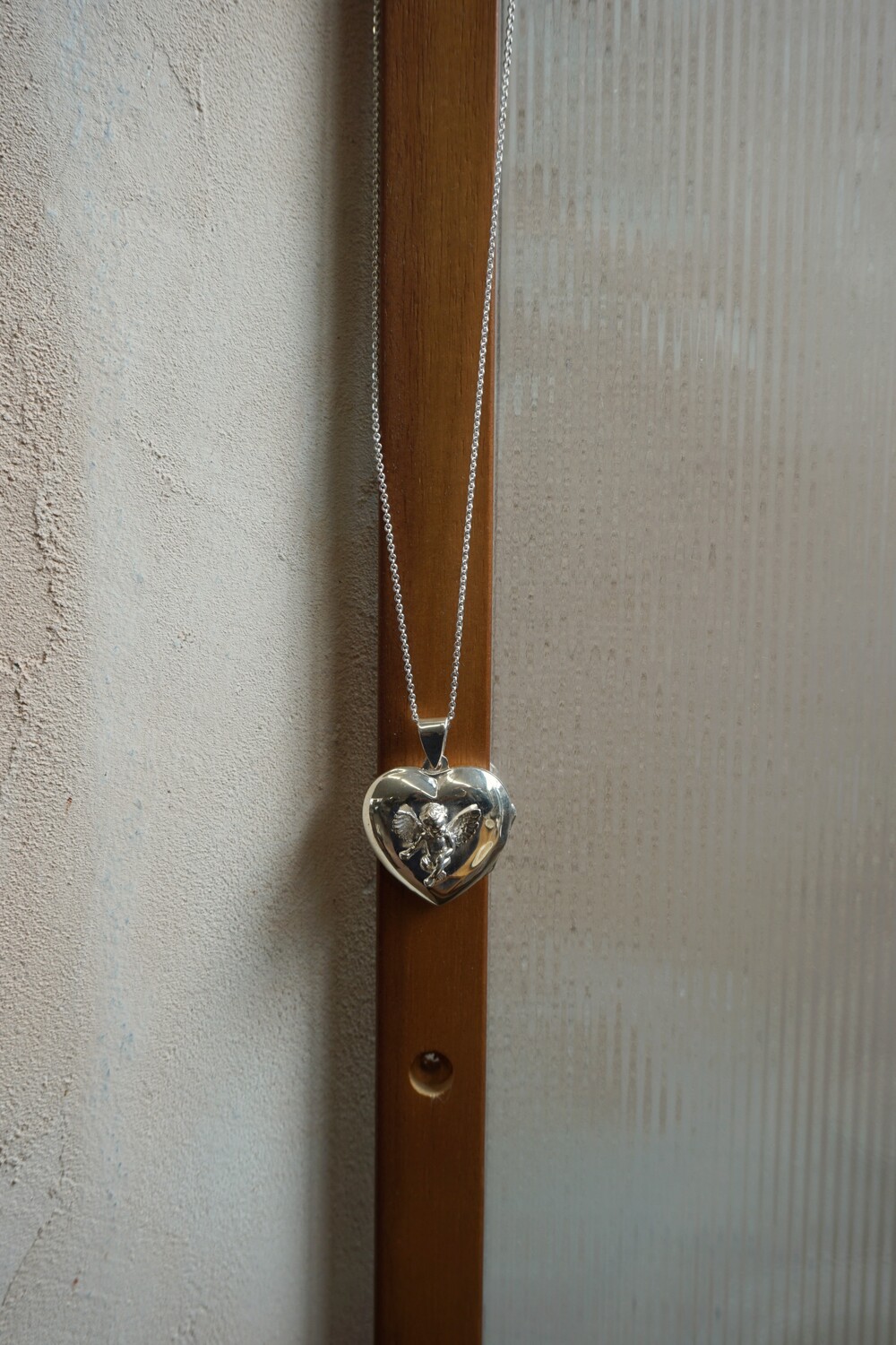 천사가 새겨진 팬던트 속에 작은 사진을 끼워 넣을 수 있는 실버 목걸이 입니다.